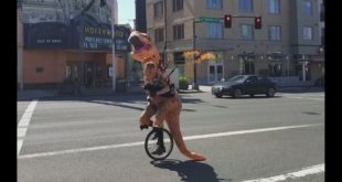 Што може да биде појако од диносаурус, на уницикл со гајда?!