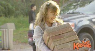 На ова девојче му е потребна помош да ги пренесе блоковите во дворот, дали може да му помогнете?